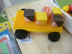Ensuite, nous avons accueilli 4 enfants de la classe de Mélanie qui est absente pour deux jours. Nous avons travaillé avec la boite à compter et l'écriture des nombres avec certains GS, pendant que les autres construisaient des objets avec le Morphun.