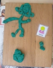 Puis dans la salle de motricité nous avons refait les idées des autres enfants que Nadine a prises en photo hier. Pas toujours facile !
