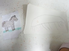Israa a apporté un dessin de cheval et elle la dessiné le cheval à côté.